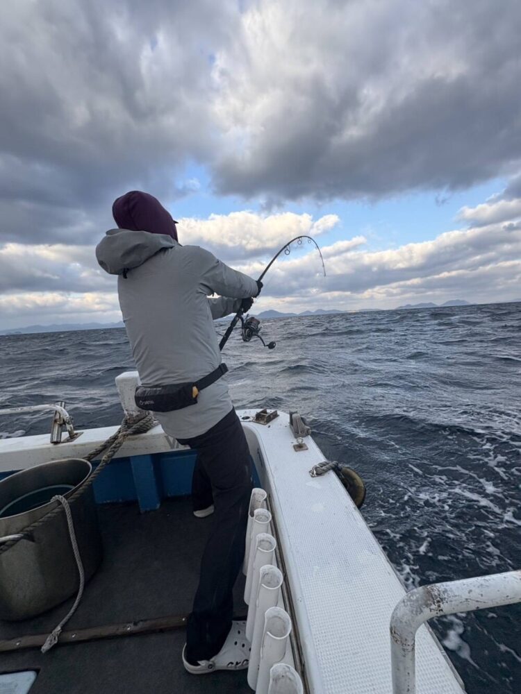 水深20m、最後のポイントで大きなヒラマサがヒット!