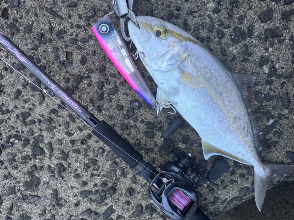 その後良型のヒラマサやカンパチのヒットがありましたが、テトラ帯でのやり取り、かつレングスが短いこともあり、取り込みで手間取り連続バラシ。