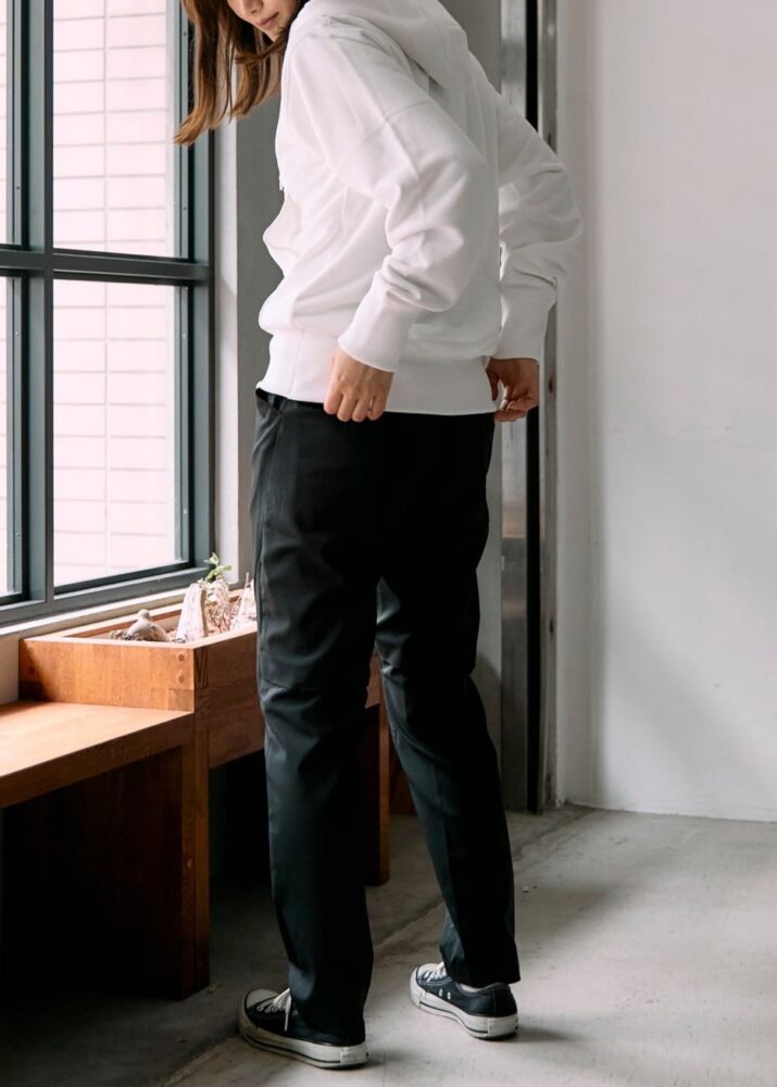 裏毛スウェットは、コットンのようなやわらかな肌触りが特徴です。街での普段づかいにも、また、山やジムで運動するときにも。