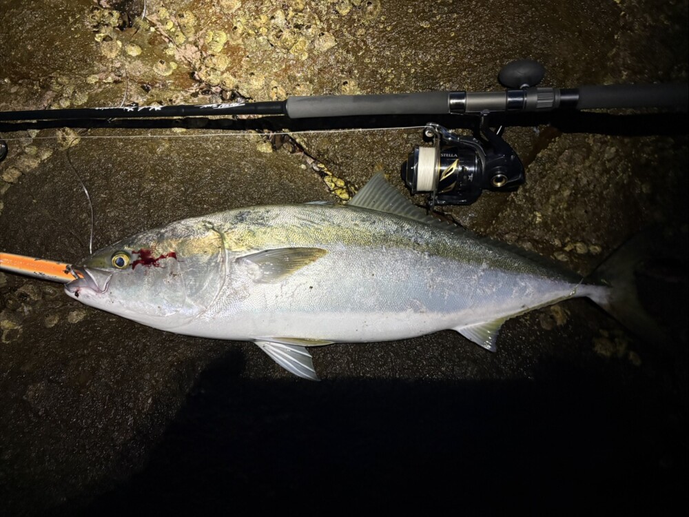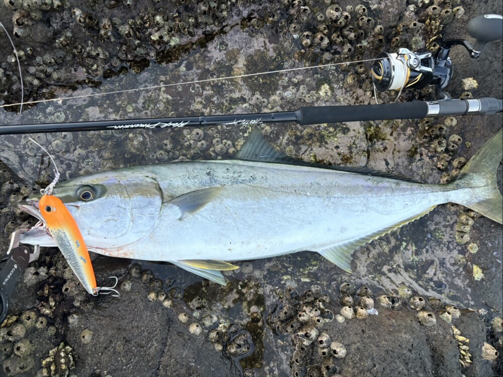 ヒラマサと思わせるほどの足下への突っ込みでしたが、ロッドの力でいなして無事ランディング成功!