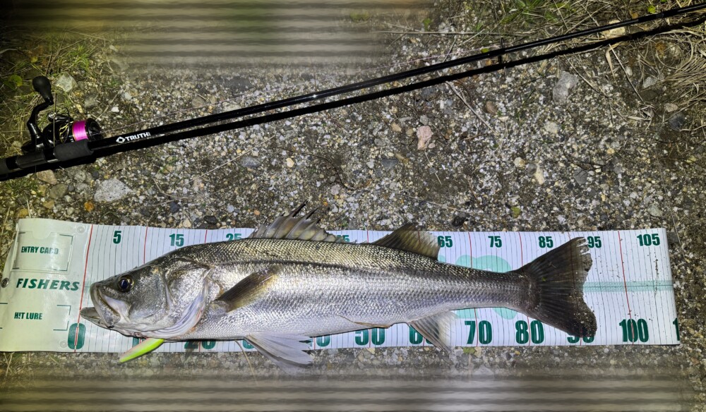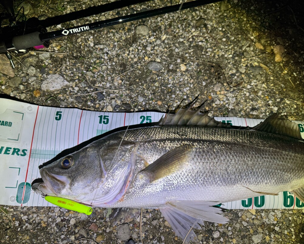 うねりや流れを何とかいなし、キャッチしたのは良いサイズのランカーでした。